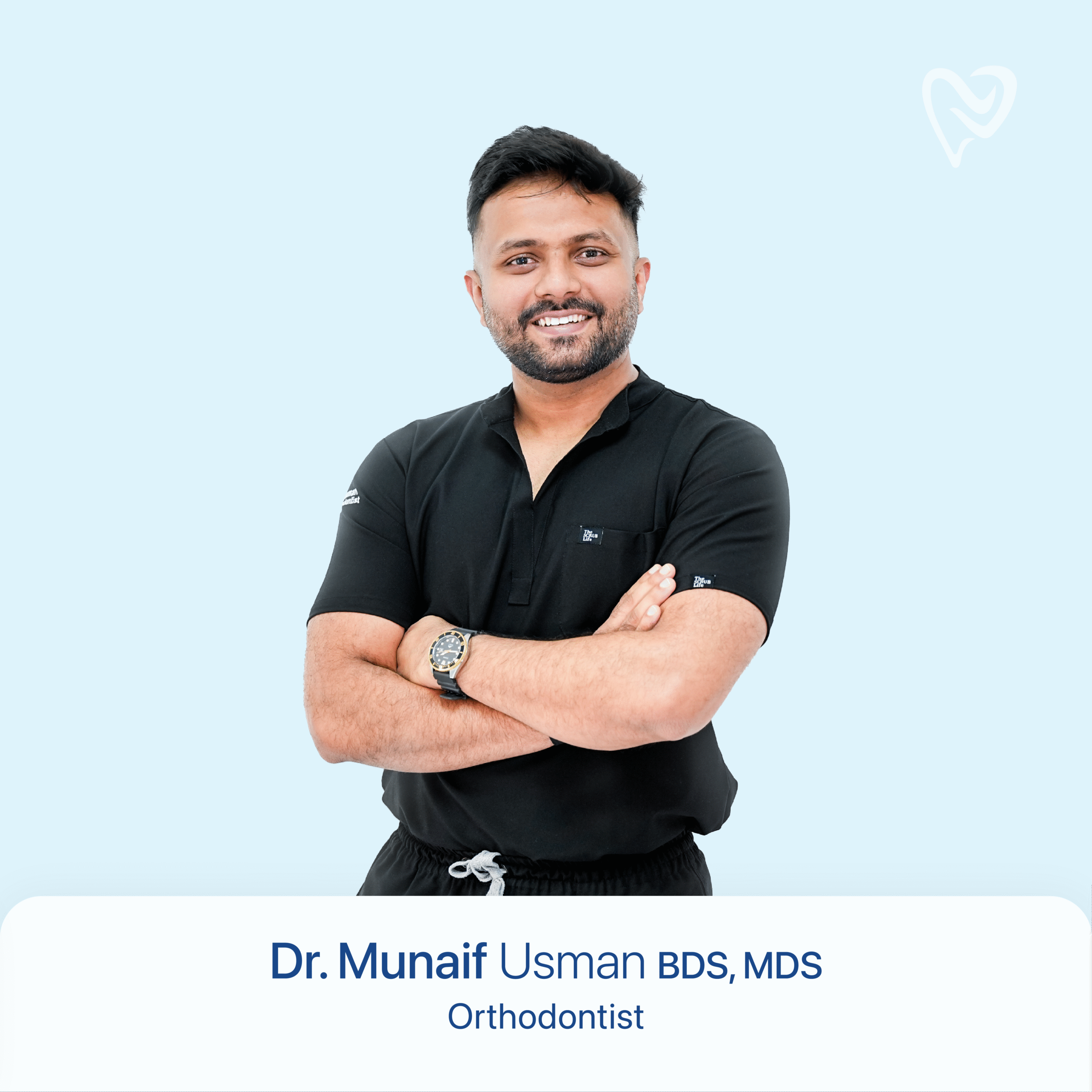 Dr. Munaif Usman is an experienced Orthodontist with seven years of clinical practice across UAE and India, known for his precision, advanced clinical skills, and patient-focused approach. He completed both his BDS and MDS in Orthodontics & Dentofacial Orthopedics from JSS Dental College and Hospital, Mysore, and further strengthened his expertise with an Invisalign Privilege Certification.